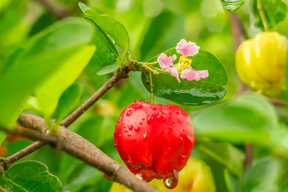 É uma deliciosa superfruta conhecida pela sua alta concentração de vitamina C, muito maior que os citrinos, como laranjas ou limões. A acerola é frequentemente usada em suplementos naturais e vitaminas, mas também em sucos de frutas pelo seu excelente sabor. Graças ao altos índices de vitamina C na acerola, este super alimento tem inúmeros benefícios a saúde na prevenção de resfriados comuns, febre do feno, gengivite e cárie dentárias. A vitamina A é outro nutriente importante encontrado na acerola que tem efeito benéfico na saúde visual, no sistema imunológico e na produção de glóbulos vermelhos.